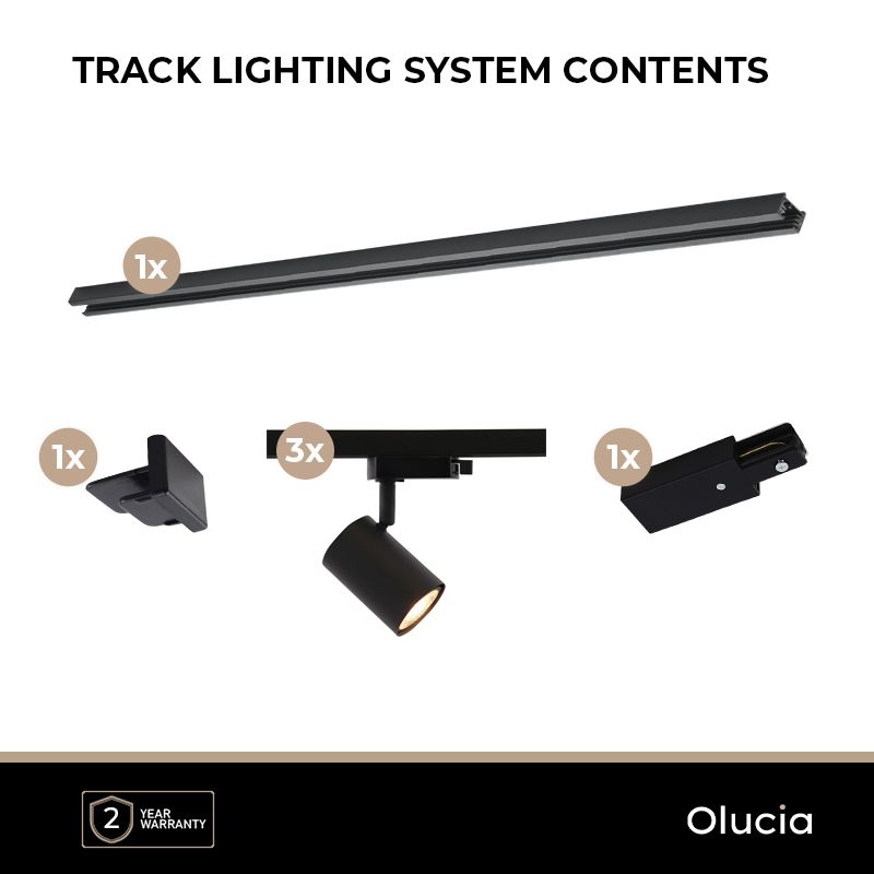 Often bought togetherLamp and non-dimmable light sources1M black 1 phase track lighting system + 3 Elena track spotsSpecial Price 44.99 RRP: Regular Price 54.993x Olucia GU10 LED bulb Antonie, black, 3W, 2700KSpecial Price 5.99 RRP: Regular Price 6.9962.96 RRP:  75.96Complete your lamp with the right light sourceLamp and dimmable light sources1M black 1 phase track lighting system + 3 Elena track spotsSpecial Price 44.99 RRP: Regular Price 54.993x Dimmable Olucia GU10 LED bulb Antonie, black, 5W, 2700KSpecial Price 6.99 RRP: Regular Price 7.9965.96 RRP:  78.96Complete your lamp with the right light sourceSpecifications