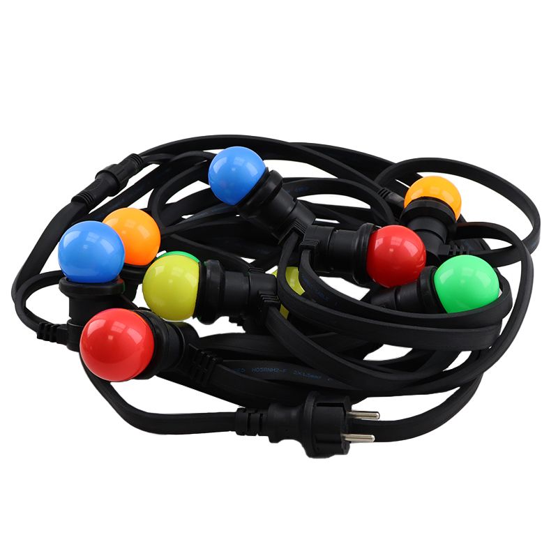 Product information Maximum wattage 5 Supply voltage 220-240V Energy label F Number of lights 5 Product information Number of Lumens 425 Light colour RGB (All colours) Lampholder type E27 Expected burning hours 10000 Light included Yes Cable length 500 Length in cm 500 Dimmable No Warranty 2 years IP classification IP44 (water proof) Colour Black Material Rubber With cord and plug Yes Article number Q20470 - Home