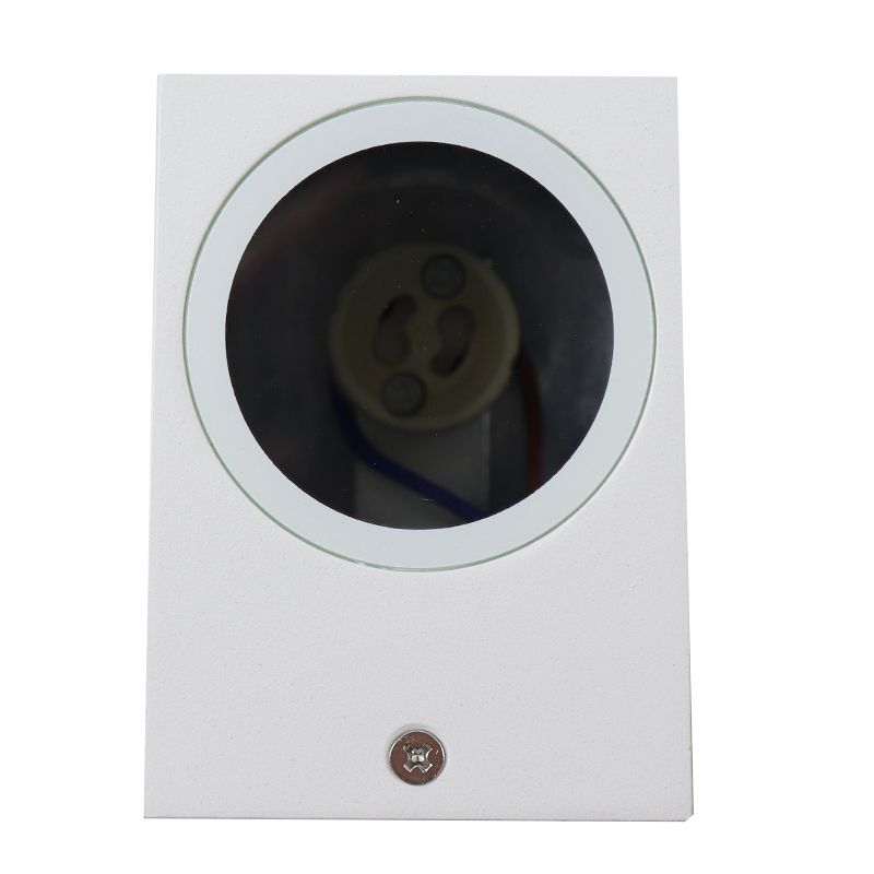 Product information Maximum wattage 35 Supply voltage 220-240V Number of lights 1 Lampholder type GU10 Product information Light included No Width in cm 6.7 Width base/mounting plate 9.8 Height in cm 8 Height base/mounting plate 8 Length in cm 9.8 Length base/mounting plate 6.7 Dimmable Yes (not included) Warranty 2 years IP classification IP44 (water proof) Colour White Material Aluminium, Glass Style Basic Article number Q24336 - Home