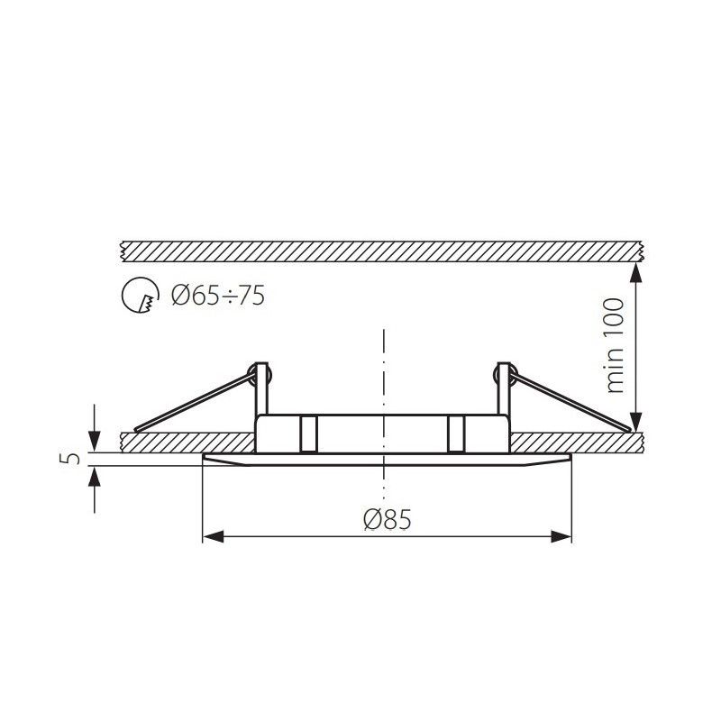 The chrome recessed light Rudo is made of aluminium. The chrome recessed light is supplied without a light source. In this lamp, a light source with a GU5.3 lamp holder is needed, the maximum wattage of the light source must not exceed 50 watt.