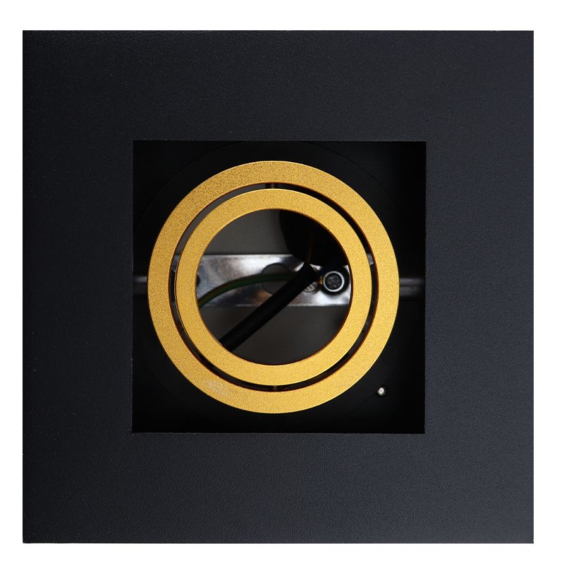Product information Maximum wattage 25 Supply voltage 220-240V Number of lights 1 Lampholder type GU10 Product information Light included No Width in cm 14 Height in cm 9 Length in cm 14 Dimmable Yes (not included) Warranty 2 years IP classification IP20 (dustproof) Colour Gold, Black Material Aluminium Style Modern Article number Q37097 - Home