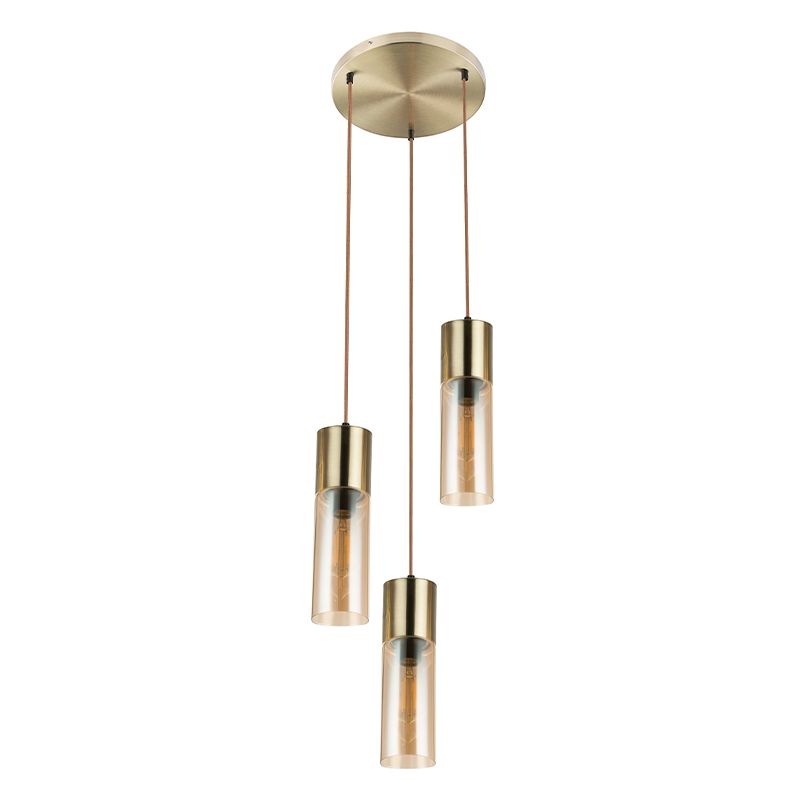 Product information Maximum wattage 25 Supply voltage 220-240V Number of lights 3 Lampholder type E27 Product information Light included No Diameter in cm 30 Weight in KG 2.73 Height in cm 150 Dimmable Yes (not included) Warranty 2 years IP classification IP20 (dustproof) Colour Brass, Amber Material Metal, Glass Style Design Article number Q47211 - Home