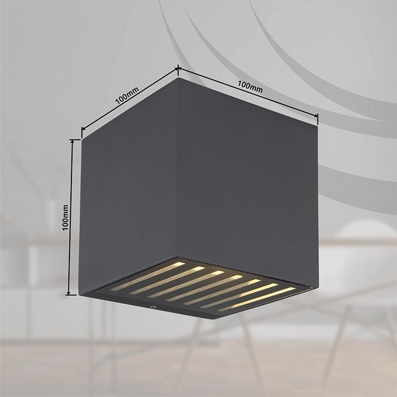 Product information Maximum wattage 6 Supply voltage 220-240V Energy label E Number of lights 1 Product information Number of Lumens 106 Colour rendering >80 Beam angle 120° Light colour 3000K (Warm white) Lampholder type LED integrated Lightsource type included Integrated LED Expected burning hours 20000 Light included Yes, integrated Width in cm 10 Height in cm 10 Dimmable No Warranty 2 years IP classification IP54 (water proof) Colour Anthracite Material Aluminium Style Modern Article number Q35138 - Home