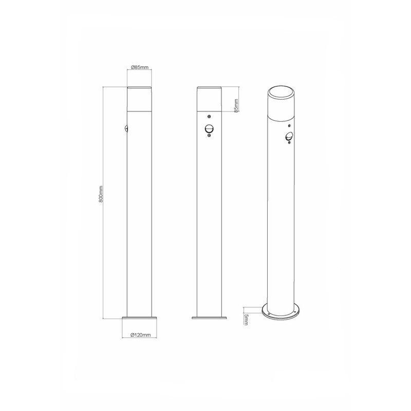 Product information Maximum wattage 28 Supply voltage 220-240V Number of lights 1 Lampholder type E27 Product information Light included No Width in cm 12 Diameter in cm 12 Weight in KG 1.31 Height in cm 80 Dimmable Yes (not included) Warranty 2 years IP classification IP44 (water proof) Colour Anthracite Material Plastic, Aluminium With switch Yes With cord and plug No Style Modern Switch type Motion sensor Article number Q14060 - Home