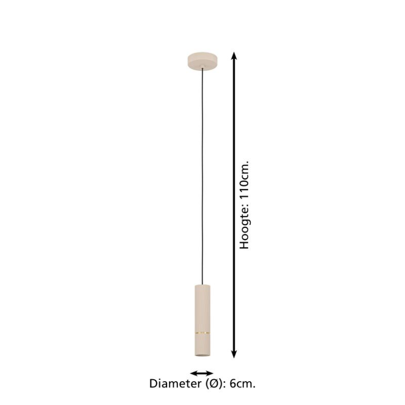 The beige modern pendant light Vahid is made of steel. The beige pendant light comes with a light source with a power of 5 watts. The LED lamp has a GU10 lamp holder and the light colour 3000K (warm white). This is warm white light that creates a cozy and warm atmosphere.