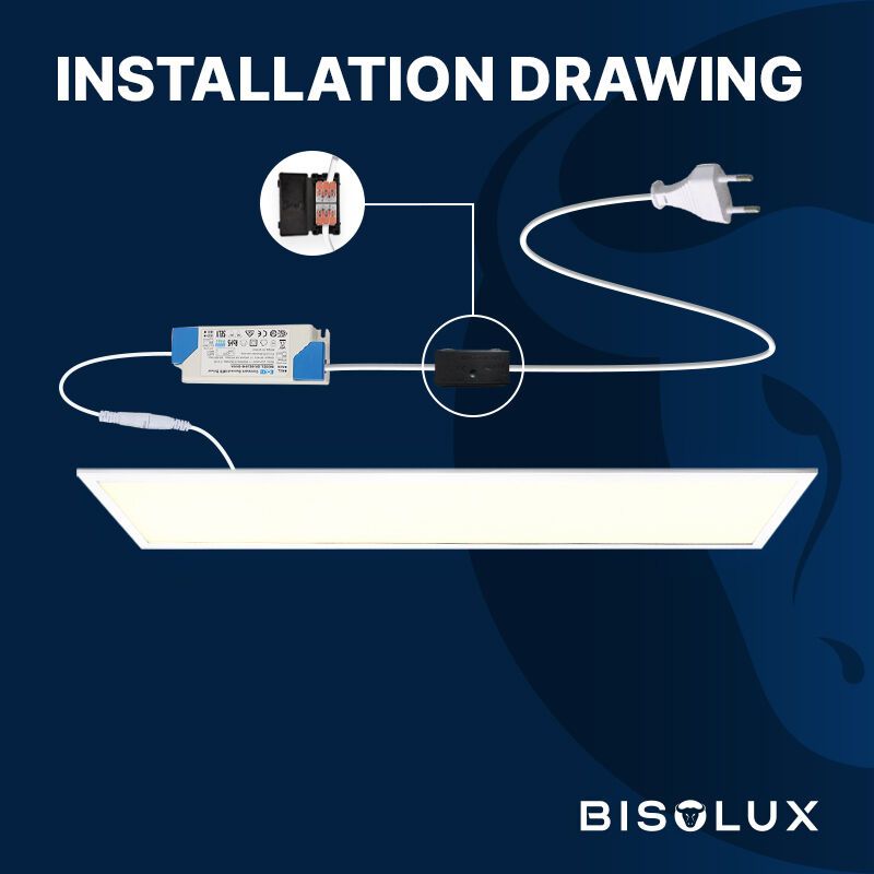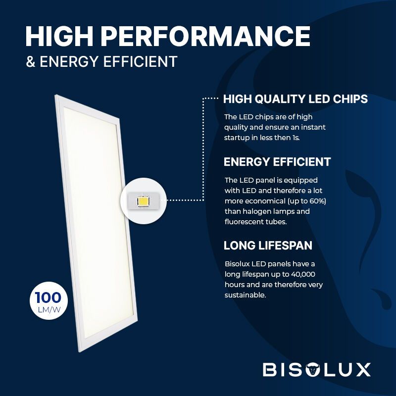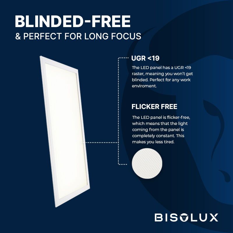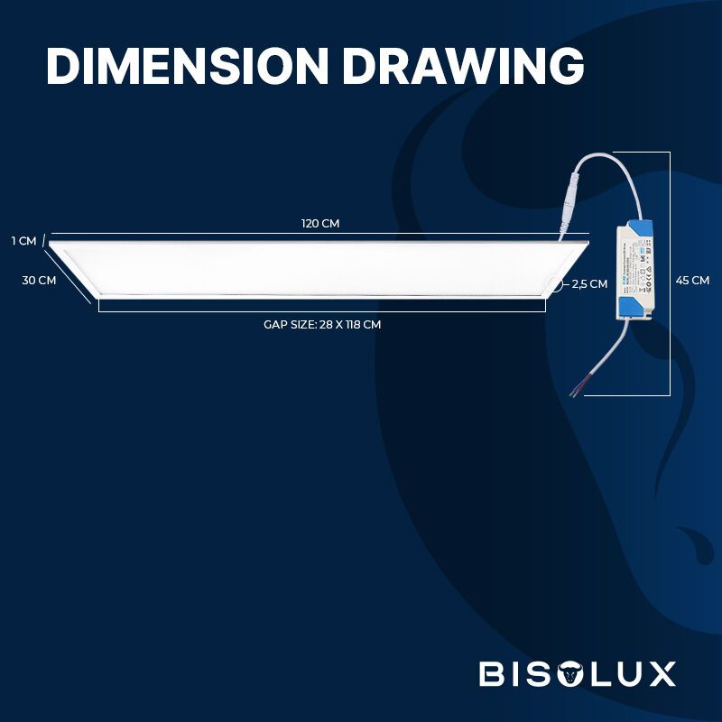 - Bisolux 1200x300 LED Panel - 38W - 6000K - Dimmable - UGR<19 - Side-Lit
