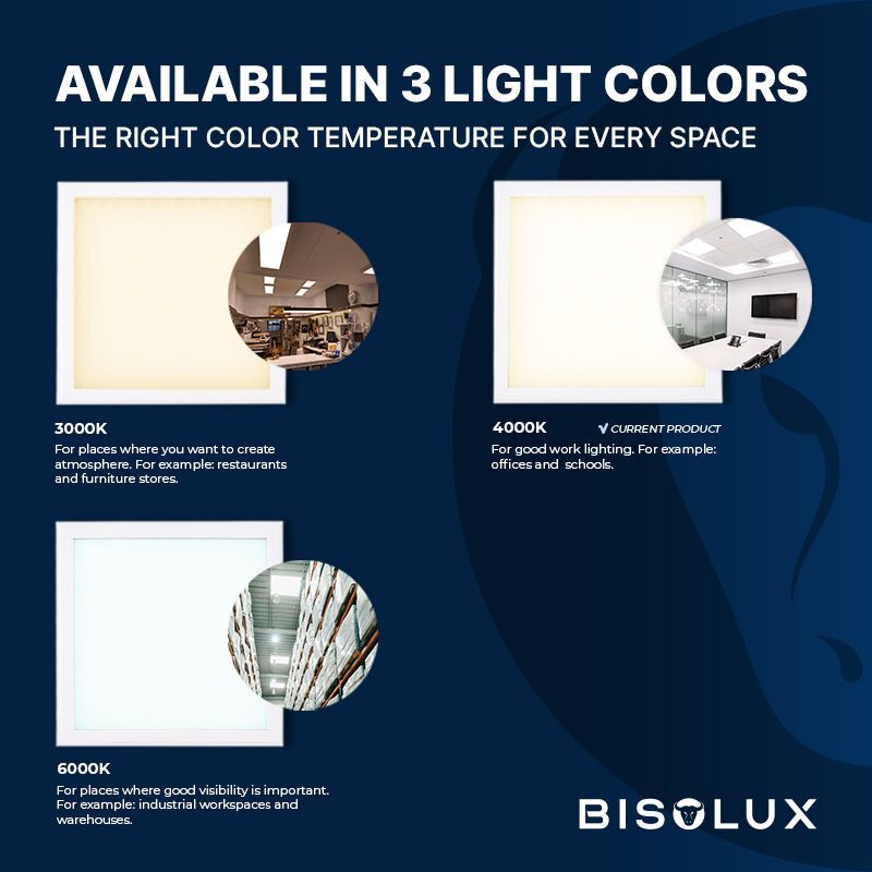 The light colour of this LED panel is 4000K (white). This is a neutral light colour that you often see in offices and work spaces.