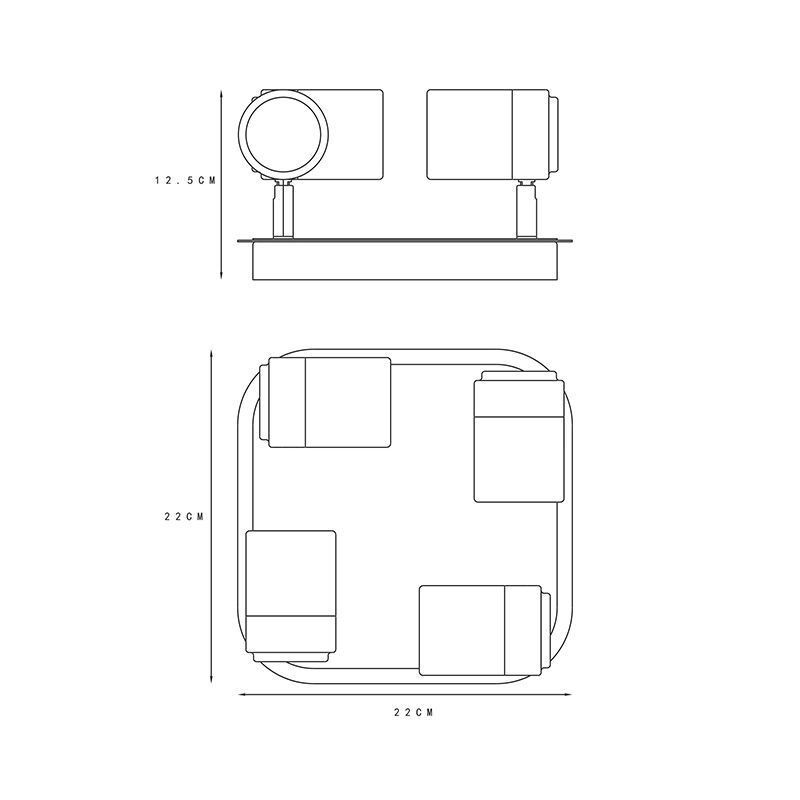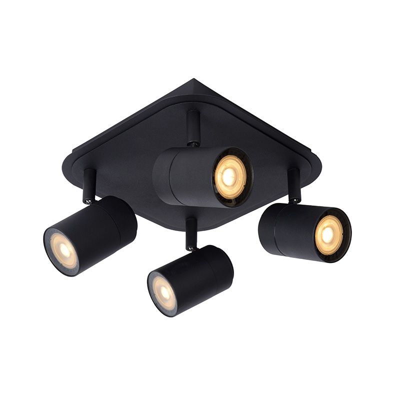 Product information Maximum wattage 5 Supply voltage 220-240V Energy label G Number of lights 4 Product information Number of Lumens 320 Colour rendering >80 Light colour 3000K (Warm white) Lampholder type GU10 Lightsource type included LED interchangeable Expected burning hours 30000 Light included Yes Width in cm 22 Weight in KG 2.2 Height in cm 13 Length in cm 22 Dimmable Yes (not included) Warranty 2 years IP classification IP44 (water proof) Colour Black Material Metal Area Bathroom Style Modern Article number Q34123 - Home