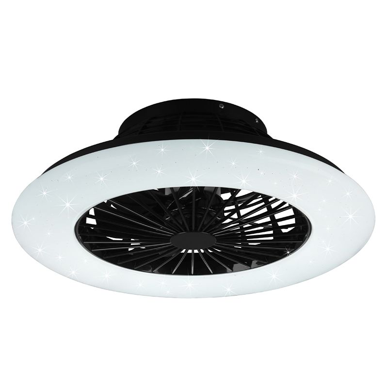 - Black ceiling fan modern, Damyan, 30W, warm to cold white adjustable LED, with remote control