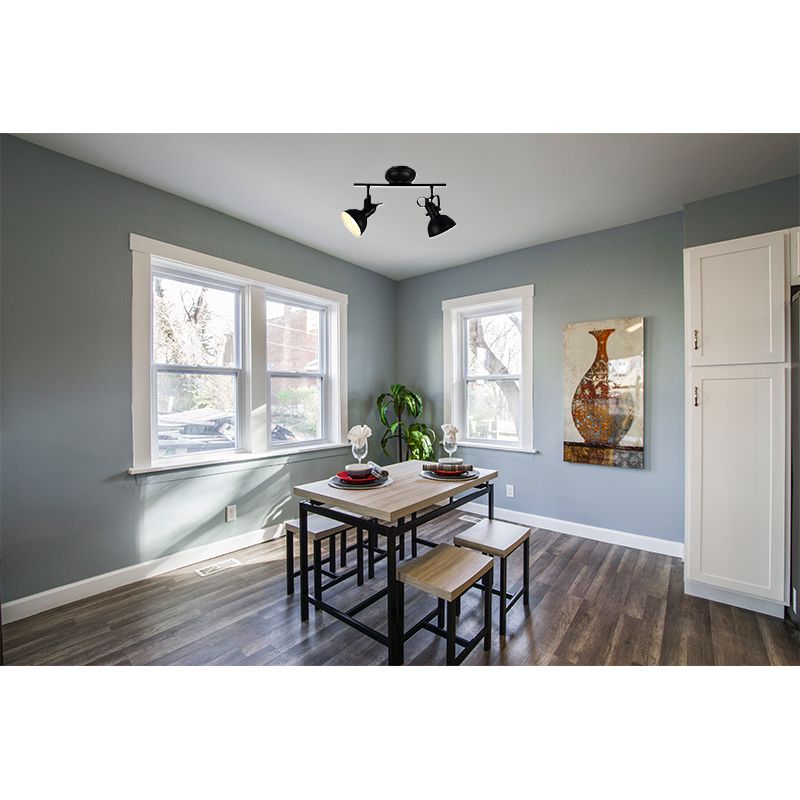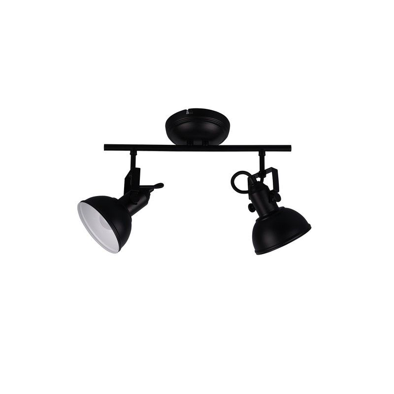 The black ceiling spotlight Kibek has the style industrial and is made of metal. This industrial ceiling spotlight has 2 E14 lamp holders and is supplied excluding 2 light sources. The lamp can accommodate light sources with a maximum power of 40 watts per bulb.