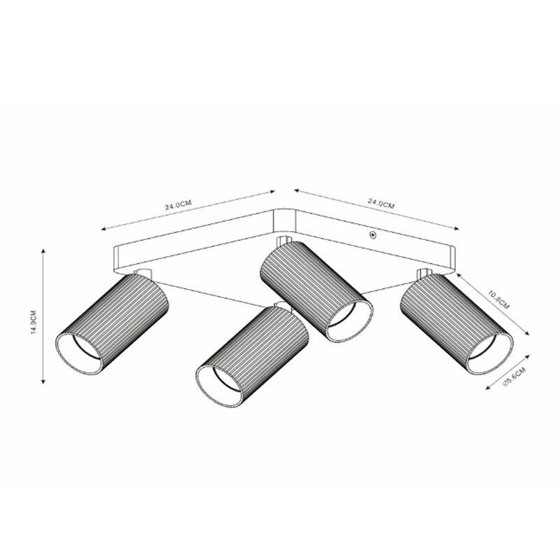 Product information Maximum wattage 40 Supply voltage 220-240V Number of lights 4 Lampholder type GU10 Product information Light included No Width in cm 24 Width base/mounting plate 24 Weight in KG 1.3 Height in cm 14.9 Height base/mounting plate 2.5 Length in cm 24 Length base/mounting plate 24 Dimmable Yes (not included) Warranty 2 years IP classification IP20 (dustproof) Colour Black Material Aluminium Style Modern Article number Q51797