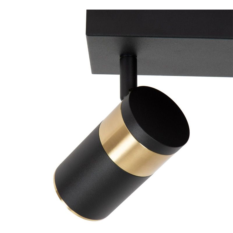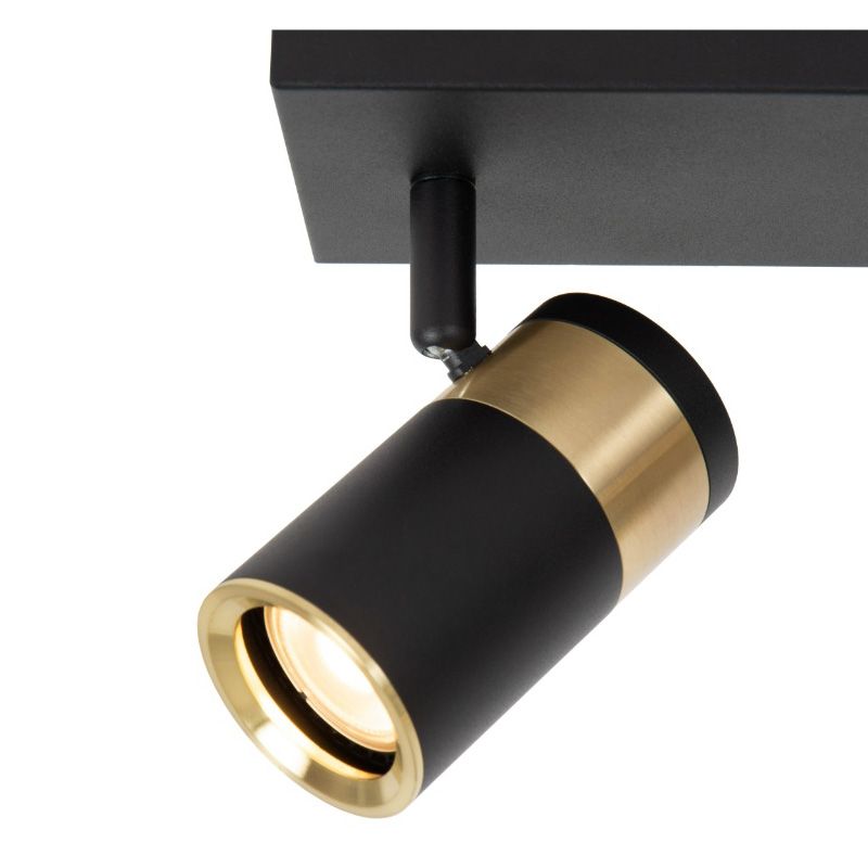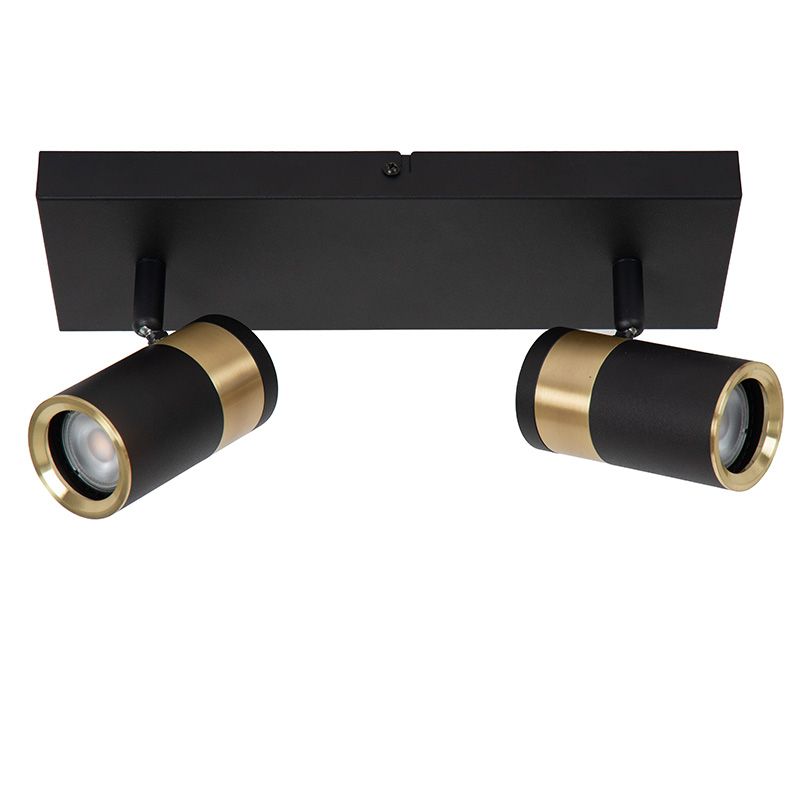 The black ceiling spotlight Gorik has the style modern and is made of metal. This modern ceiling spotlight has 2 GU10 lamp holders and is supplied excluding 2 light sources. The lamp can accommodate light sources with a maximum power of 40 watts per bulb.