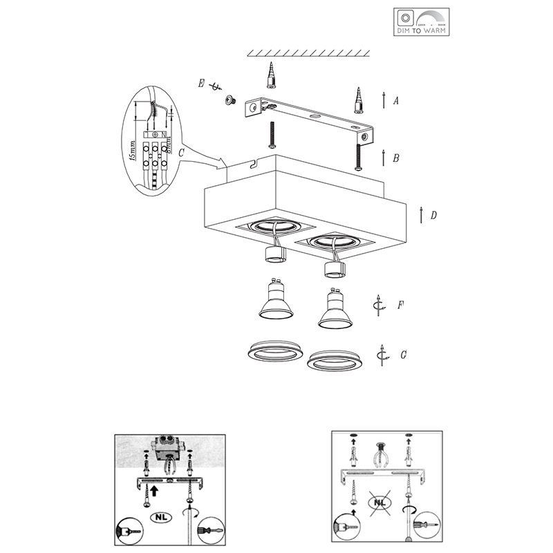 Product information Maximum wattage 5 Supply voltage 220-240V Energy label G Number of lights 2 Product information Number of Lumens 320 Colour rendering >80 Beam angle 40° Light colour Dim to Warm Powerfactor 0.5 Lampholder type GU10 Lightsource type included LED interchangeable Expected burning hours 30000 Light included Yes Width in cm 14 Weight in KG 1.05 Height in cm 8.8 Length in cm 25 Dimmable Yes (not included) Warranty 2 years IP classification IP20 (dustproof) Colour Black Material Aluminium With switch No With cord and plug No Style Modern Article number Q18522 - Home