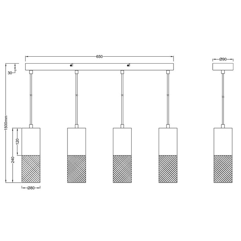 Product information Maximum wattage 40 Supply voltage 220-240V Number of lights 4 Lampholder type E27 Product information Light included No Width in cm 65 Weight in KG 2.6 Height in cm 150 Length in cm 9 Dimmable Yes (not included) Warranty 2 years IP classification IP20 (dustproof) Colour Black Material Metal Area Living room, Bedroom Style Vintage Article number Q25666 - Home