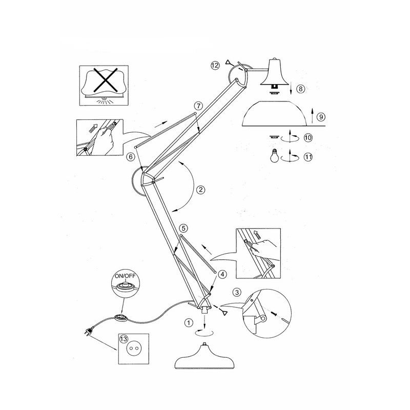 Product information Maximum wattage 60 Supply voltage 220-240V Number of lights 1 Lampholder type E27 Product information Light included No Weight in KG 12.5 Height in cm 190 Cable length 170 Length in cm 38 Dimmable Yes (not included) Warranty 2 years IP classification IP20 (dustproof) Colour Black Material Metal With switch Yes Area Living room Style Industrial Switch type On/off switch on the cord Article number Q16895