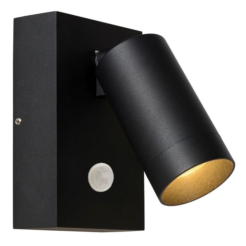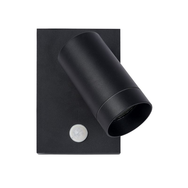 The black outdoor wall light with motion sensor Taylor has the style modern and is made of aluminium. This modern outdoor wall light with motion sensor has a GU10 lamp holder and is supplied without a light source. The lamp can accommodate light sources with a maximum power of 50 watts.