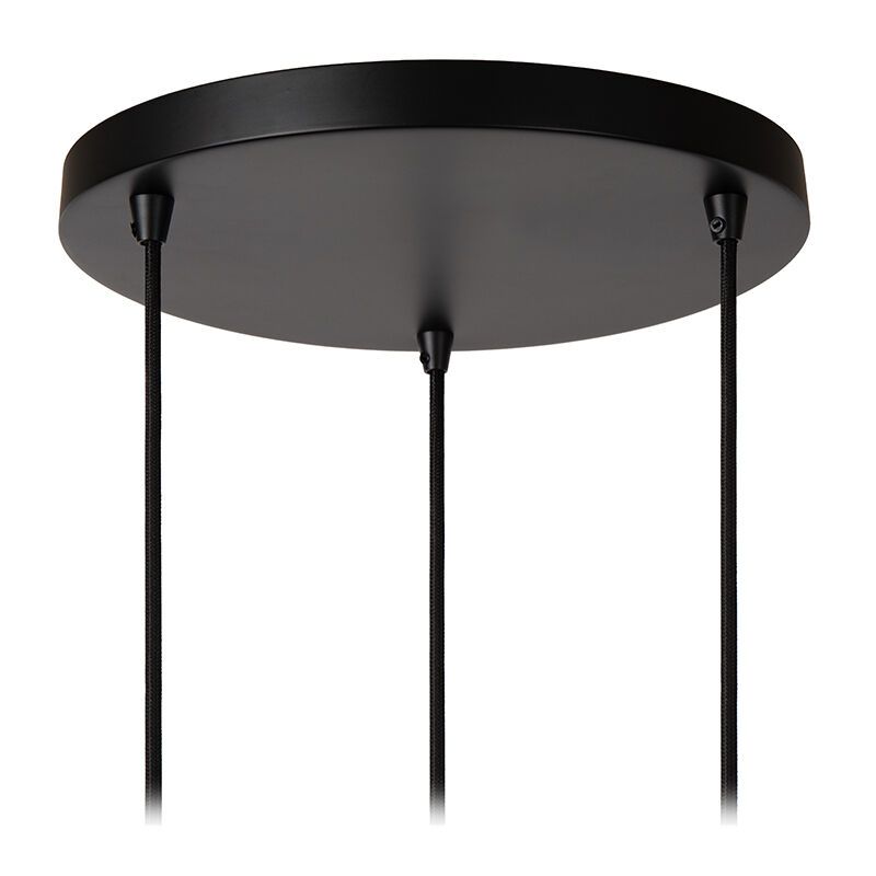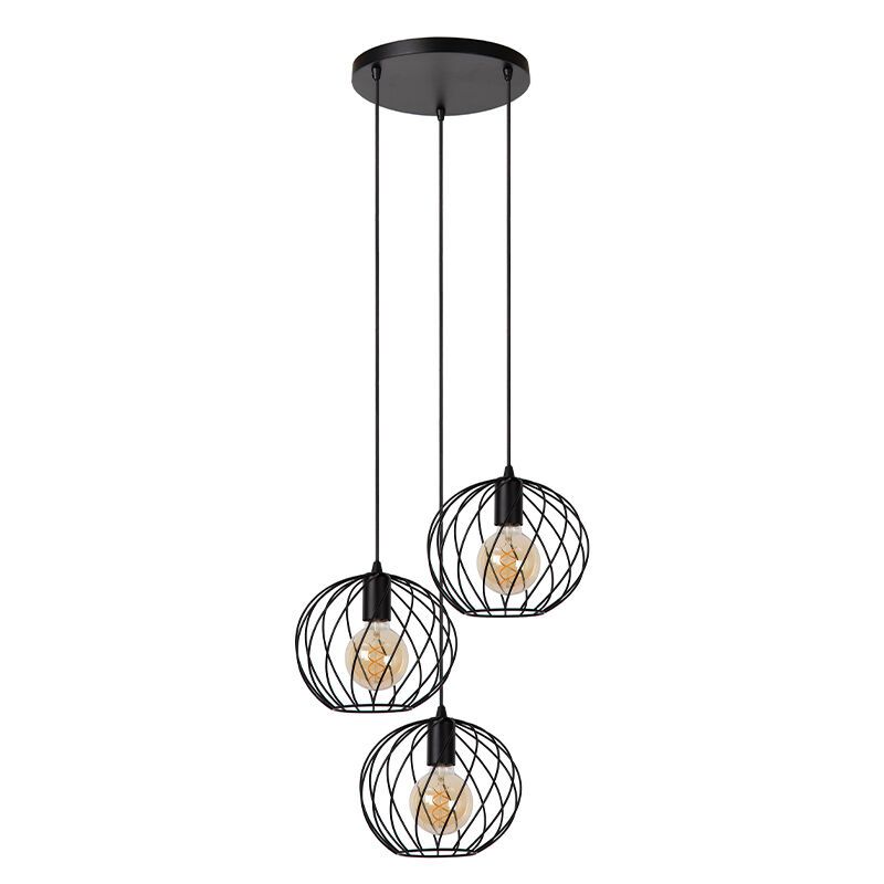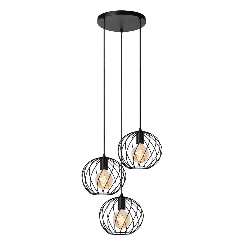 The black pendant light Danza has the style classic and is made of metal. This classic pendant light has 3 E27 lamp holders and is supplied excluding 3 light sources. The lamp can accommodate light sources with a maximum power of 40 watts per bulb.