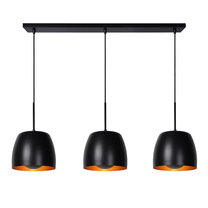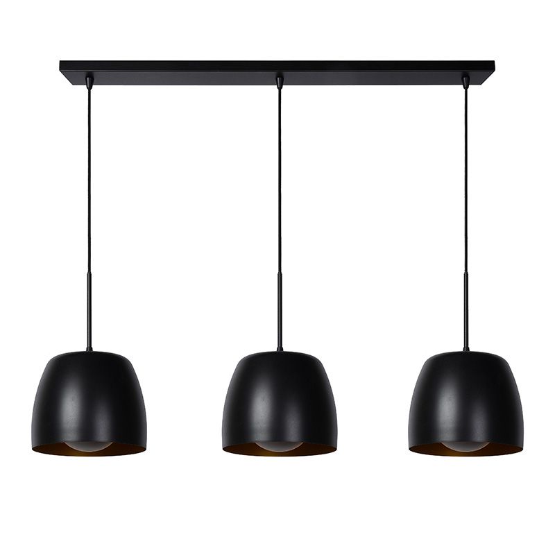 The black pendant light Nolan has the style classic and is made of metal. This classic pendant light has 3 E27 lamp holders and is supplied excluding 3 light sources. The lamp can accommodate light sources with a maximum power of 40 watts per bulb.