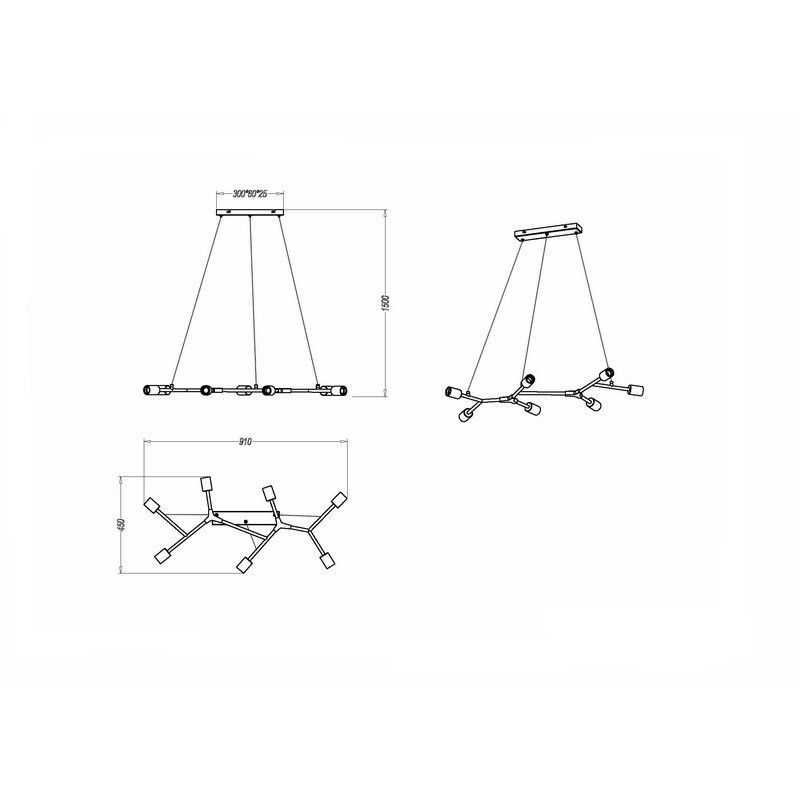 The black pendant light Kyan has the style modern and is made of metal. This modern pendant light has 7 E27 lamp holders and is supplied excluding 7 light sources. The lamp can accommodate light sources with a maximum power of 28 watts per bulb.
