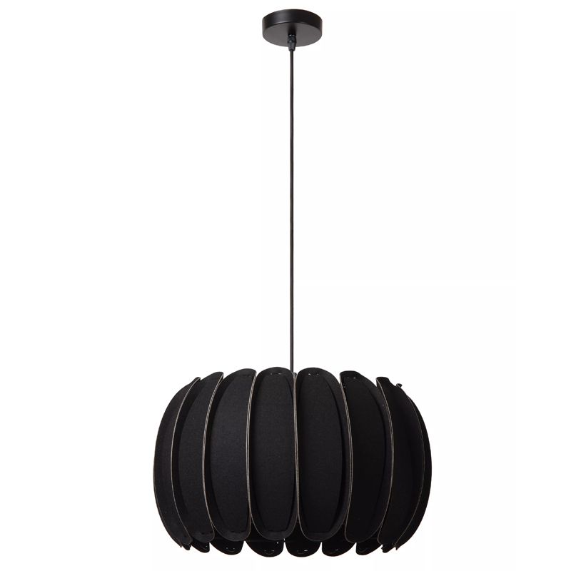 The black pendant light Spencer has the style modern and is made of fabric. This modern pendant light has a E27 lamp holder and is supplied without a light source. The lamp can accommodate light sources with a maximum power of 40 watts.