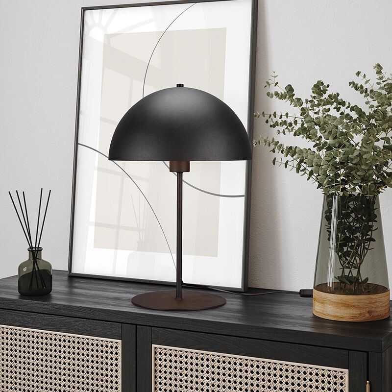 The black table lamp Fransisca has the style modern and is made of metal. This modern table lamp has a E27 lamp holder and is supplied without a light source. The lamp can accommodate light sources with a maximum power of 40 watts.