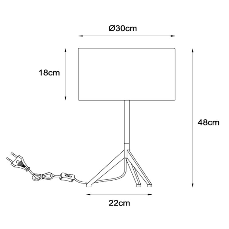 Product information Maximum wattage 60 Supply voltage 220-240V Number of lights 1 Lampholder type E27 Product information Light included No Width in cm 30 Diameter in cm 30 Weight in KG 1.35 Height in cm 48 Cable length 180 Length in cm 30 Dimmable Yes (not included) Warranty 2 years IP classification IP20 (dustproof) Colour Black Material Metal, Fabric With switch Yes With cord and plug Yes Style Modern Switch type On/off switch on the cord Article number Q80694 - Home