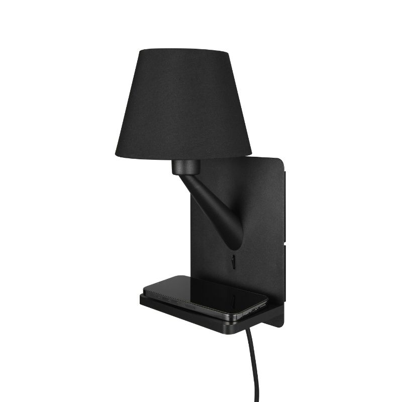 - Black wall light fabric, Tahir, with switch