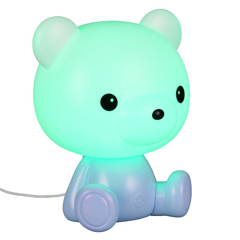This blue children's table lamp plastic, Lumibear, has the following features: