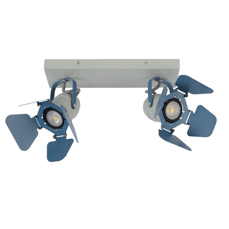 The blue kid's ceiling spotlight Picto has the style modern and is made of metal. This modern kid's ceiling spotlight has 2 GU10 lamp holders and is supplied excluding 2 light sources. The lamp can accommodate light sources with a maximum power of 5 watts per bulb.