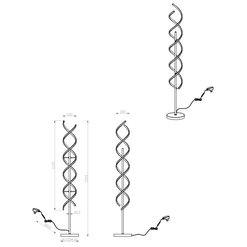 89.995-8 working days Black floor lamp modern, Ritual, with switch- H: 149 cm