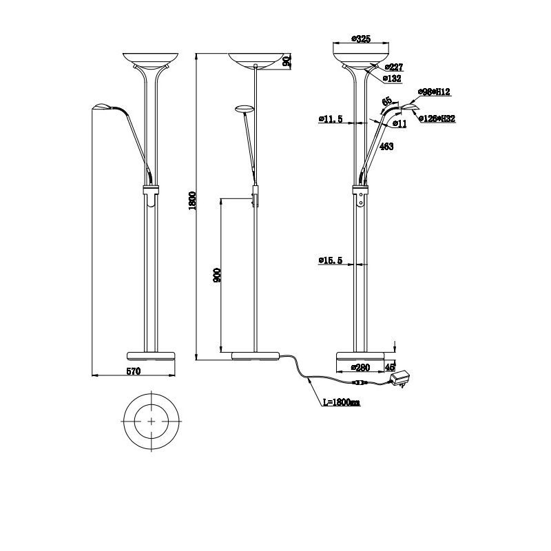 Product information Maximum wattage 27 Supply voltage 220-240V Number of lights 1 Number of Lumens 2700 Product information Light colour 3000K (Warm white) Lampholder type LED integrated Lightsource type included Integrated LED Expected burning hours 30000 Light included Yes, integrated Width in cm 32.5 Weight in KG 7.65 Height in cm 180 Dimmable Yes (included) Warranty 2 years IP classification IP20 (dustproof) Colour Brass Material Metal With switch Yes With cord and plug Yes Area Living room, Bedroom Style Modern Switch type On/off touch switch on the cord Article number Q25791 - Home