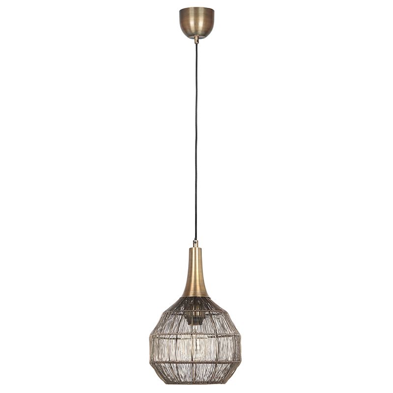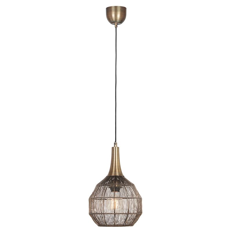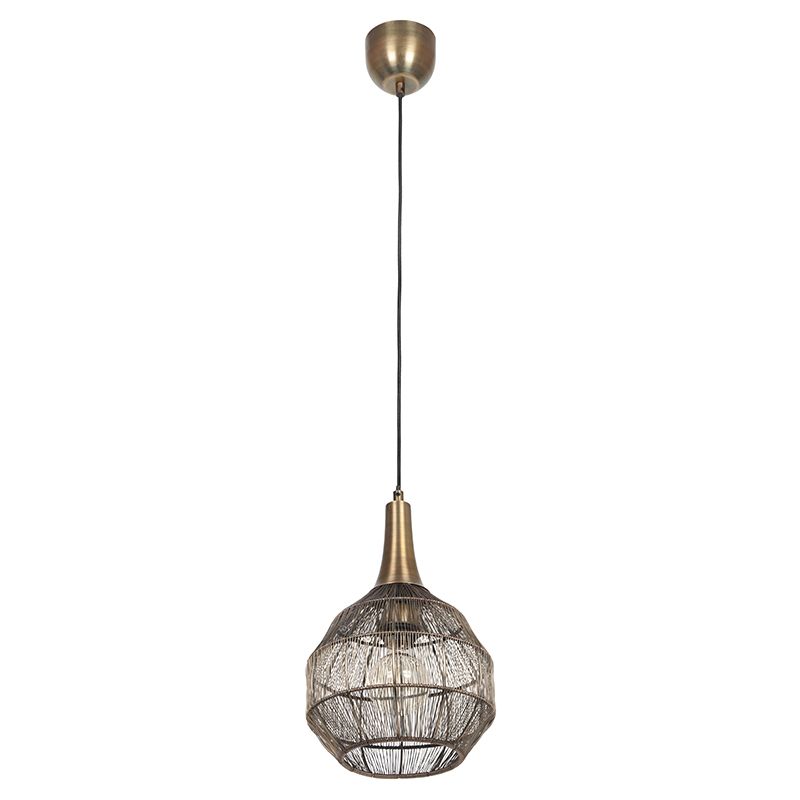 The bronze pendant light Rins has the style rustic and is made of metal. This rustic pendant light has a E27 lamp holder and is supplied without a light source. The lamp can accommodate light sources with a maximum power of 10 watts.
