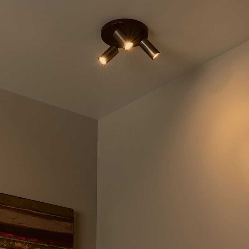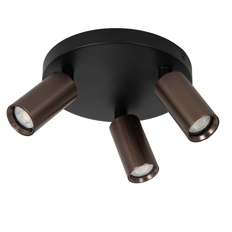 The brown ceiling spotlight Ritmo has the style modern and is made of aluminium. This modern ceiling spotlight has 3 GU10 (MR11) lamp holders and is supplied excluding 3 light sources. The lamp can accommodate light sources with a maximum power of 35 watts per bulb.