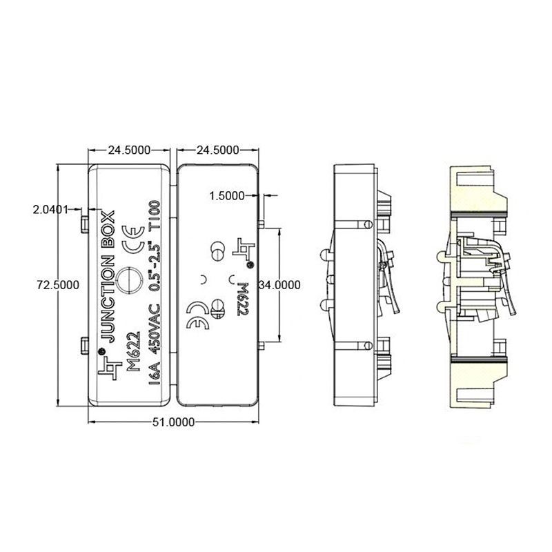 3 pin junction box, IP66 Through-welding terminal (25 pieces), 3 wires, 0.2 - 4 mm² Wieland GST18I3 connection cable male 0.75 mm² 0.5 meters 3 pin 4-way connector, IP68- W: 7,8 cm, L: 15,9 cm