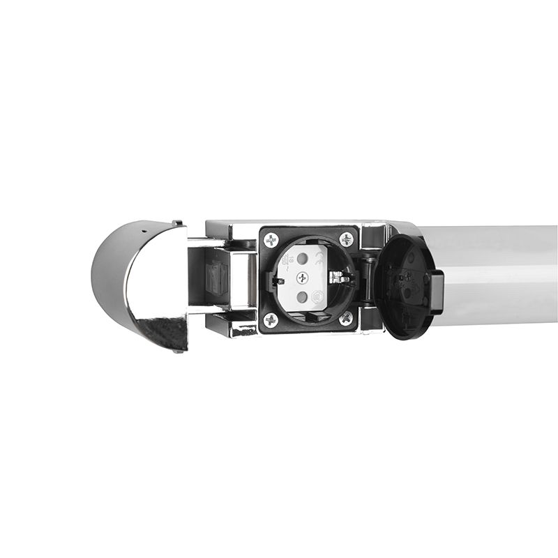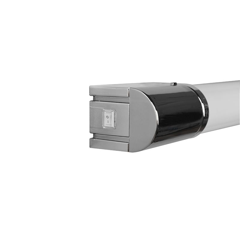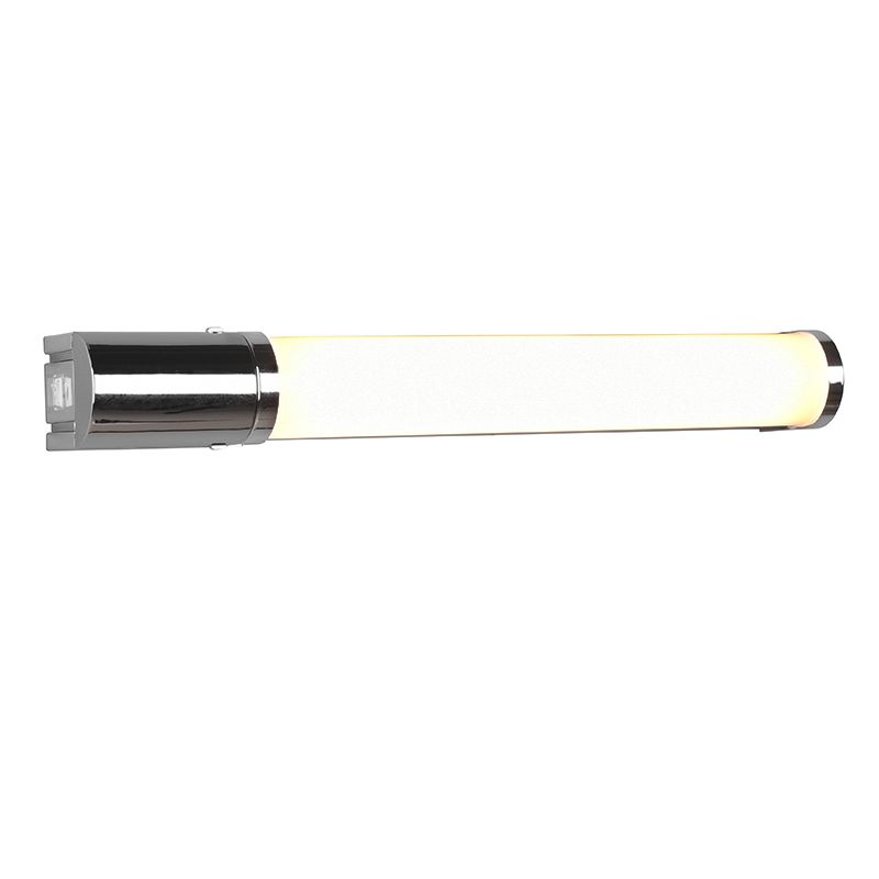 Product information Maximum wattage 8 Supply voltage 220-240V Number of lights 1 Number of Lumens 850 Product information Light colour 3000K (Warm white) Lampholder type LED integrated Lightsource type included Integrated LED Expected burning hours 20000 Light included Yes, integrated Width in cm 41.5 Height in cm 5.5 Dimmable No Warranty 2 years IP classification IP44 (water proof) Colour Chrome Material Plastic Area Bathroom Style Modern Article number Q32249 - Home