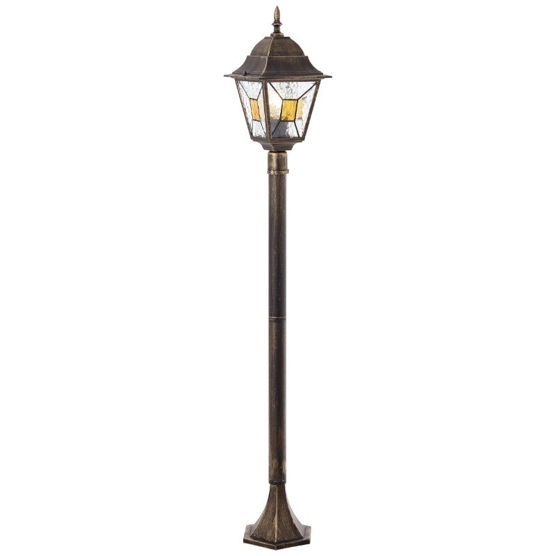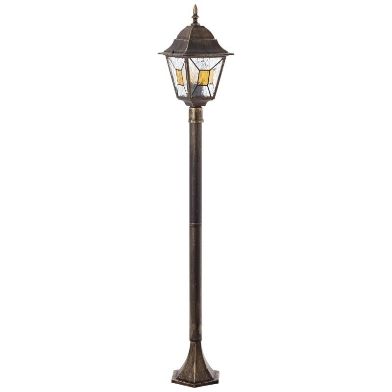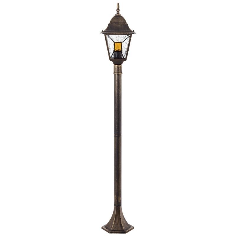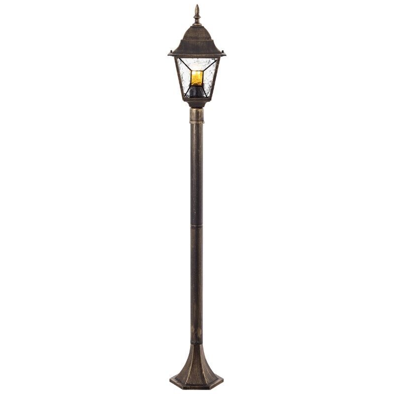 Product information Maximum wattage 60 Supply voltage 220-240V Number of lights 1 Lampholder type E27 Product information Light included No Width in cm 18 Weight in KG 1.425 Height in cm 116 Length in cm 18 Dimmable Yes (not included) Warranty 2 years IP classification IP44 (water proof) Colour Rust colored, Black Material Metal, Glass Style Classic Article number Q79763 - Home