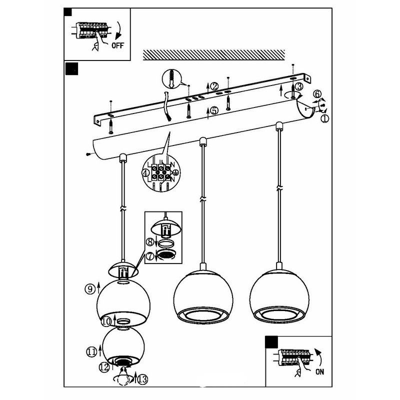 • 3 x E27 lamp holder (excl. light bulbs)