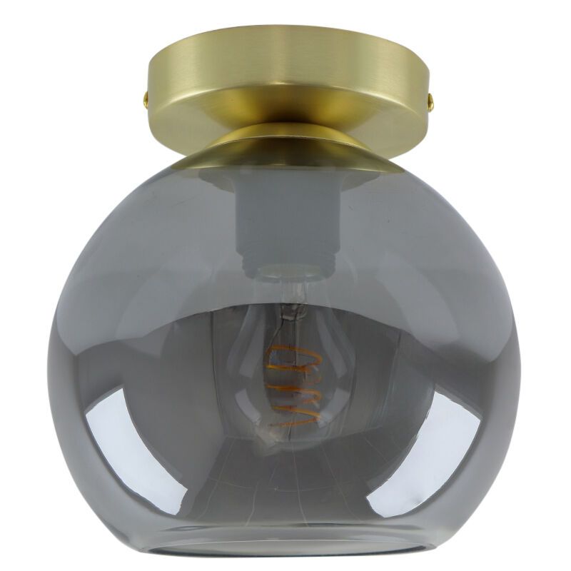 Product information Maximum wattage 40 Supply voltage 220-240V Number of lights 1 Lampholder type E27 Product information Light included No Width in cm 20 Width base/mounting plate 12 Diameter in cm 20 Height in cm 21 Height base/mounting plate 2.5 Length in cm 20 Length base/mounting plate 12 Dimmable Yes (not included) Warranty 2 years IP classification IP20 (dustproof) Colour Grey, Brass Material Metal, Glass Style Design Article number Q52401 - Home