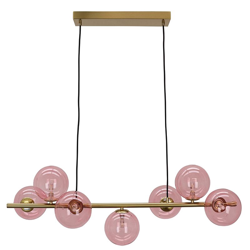 Product information Maximum wattage 5 Supply voltage 220-240V Number of lights 7 Lampholder type G9 Product information Light included No Width in cm 32 Width base/mounting plate 10 Height in cm 120 Height base/mounting plate 3 Length in cm 90 Length base/mounting plate 39 Dimmable Yes (not included) Warranty 2 years IP classification IP20 (dustproof) Colour Brass, Pink Material Metal, Glass Style Design Article number Q18622 - Home