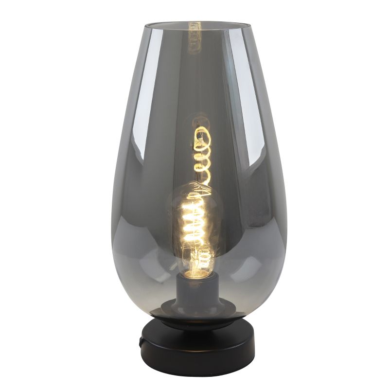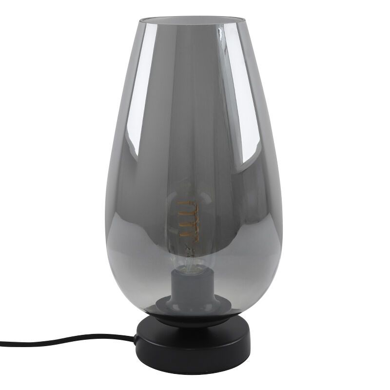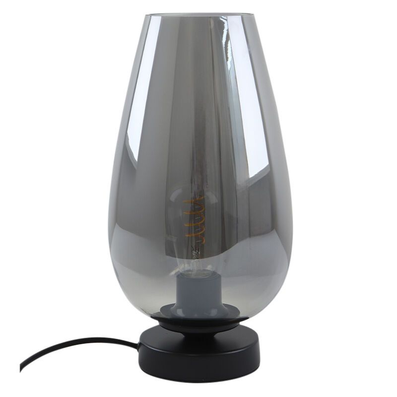 Product information Maximum wattage 40 Supply voltage 220-240V Number of lights 1 Lampholder type E27 Product information Light included No Width in cm 18 Width base/mounting plate 12 Diameter in cm 18 Height in cm 35 Height base/mounting plate 2.5 Cable length 150 Length in cm 18 Length base/mounting plate 12 Dimmable Yes (not included) Warranty 2 years IP classification IP20 (dustproof) Colour Grey, Black Material Metal, Glass With switch Yes With cord and plug Yes Style Design Switch type On/off switch on the cord Article number Q52406 - Home