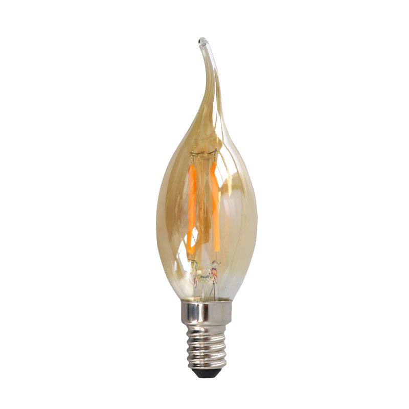 - Dimmable E14 LED tip candle, 3w, amber glass, 2200K