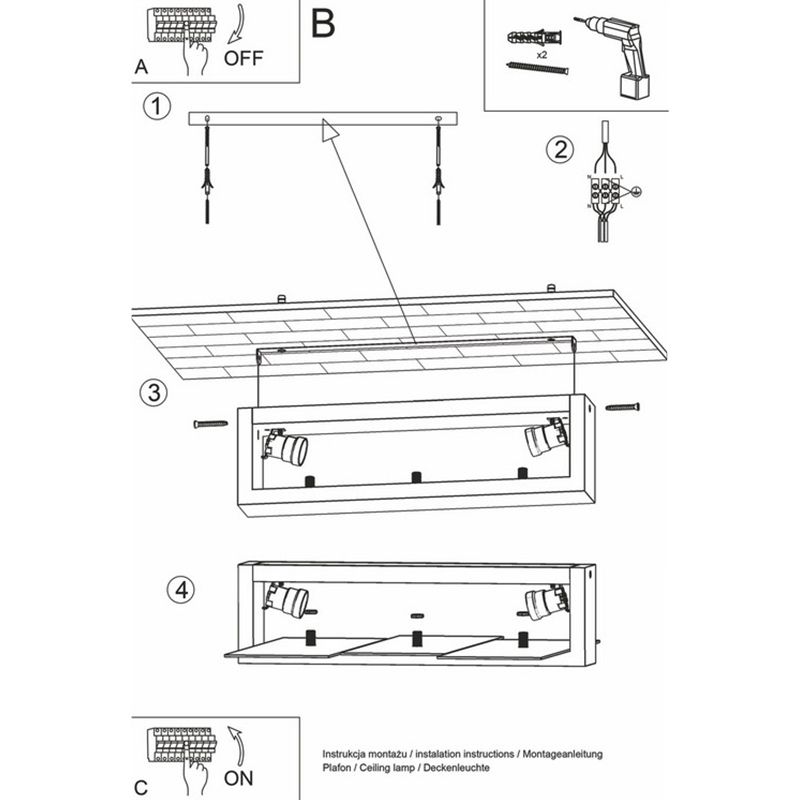 Product information Maximum wattage 60 Supply voltage 220-240V Number of lights 2 Lampholder type E27 Product information Light included No Width in cm 43 Height in cm 12 Length in cm 43 Dimmable Yes (not included) Warranty 2 years IP classification IP20 (dustproof) Colour White Material Wood, Glass Style Modern Article number Q29653