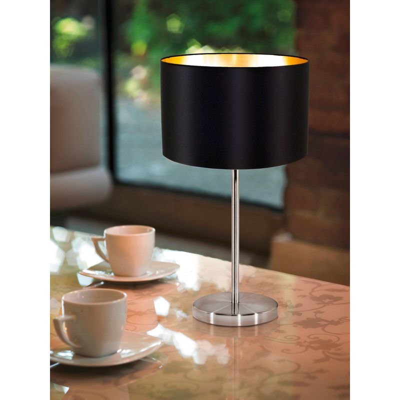 Product information Maximum wattage 60 Supply voltage 220-240V Number of lights 1 Lampholder type E27 Product information Light included No Width in cm 23 Diameter in cm 23 Weight in KG 0.9 Height in cm 42 Cable length 150 Dimmable Yes (not included) Warranty 2 years IP classification IP20 (dustproof) Colour Gold, Black Material Fabric With switch Yes Area Living room, Bedroom Style Modern Switch type On/off switch on the cord Article number Q16158 - Home