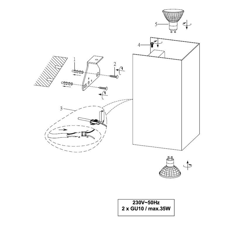• 2 x GU10 lamp holder (excl. light bulbs)