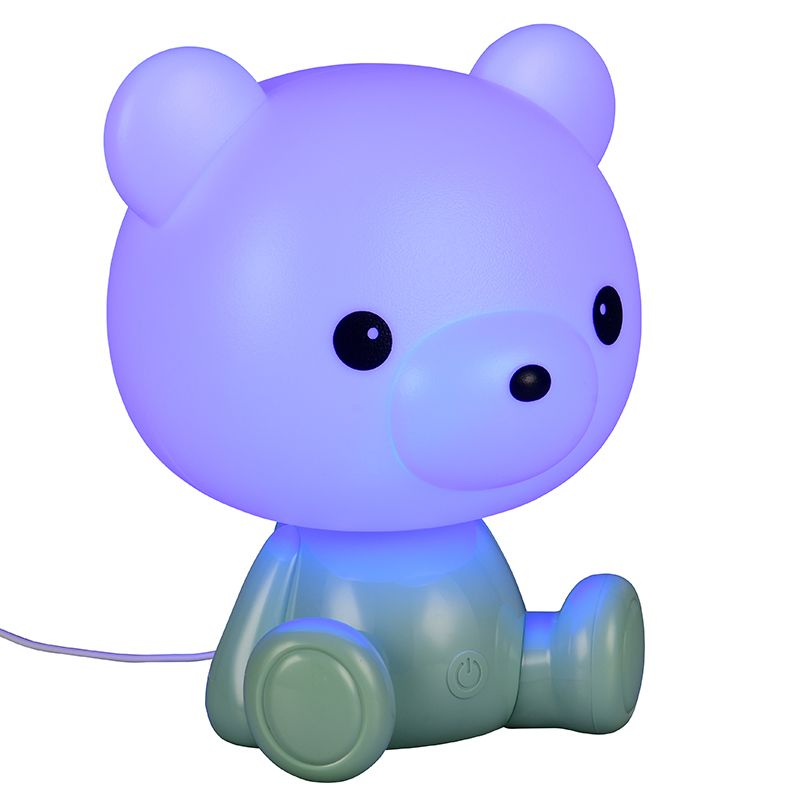 - Green children's table lamp plastic, Lumibear, 0,3W, RGB LED, with switch
