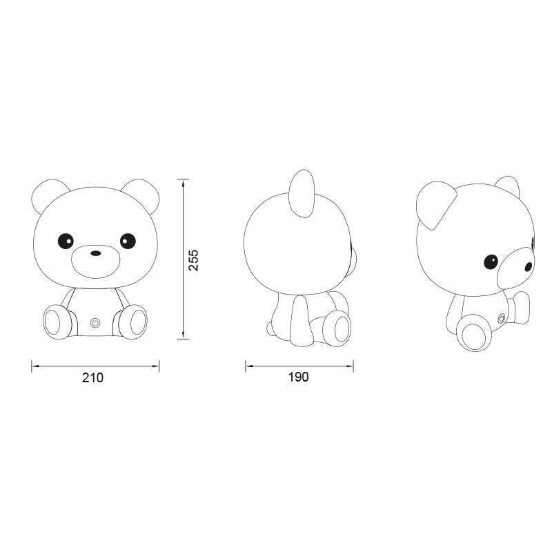 The green children's table lamp Lumibear is made of plastic. This green children's table lamp is equipped with integrated LED light. The integrated LED lighting has a power of 0.3 watts and the light color can be adjusted between red, green and blue.