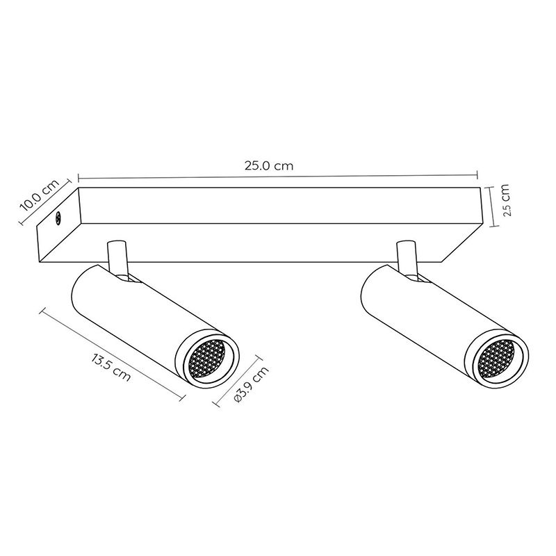 Product information Maximum wattage 8 Supply voltage 220-240V Number of lights 2 Lampholder type GU10 (MR11) Product information Light included No Width in cm 10 Weight in KG 0.69 Height in cm 23 Length in cm 25 Dimmable Yes (not included) Warranty 2 years IP classification IP20 (dustproof) Colour Grey Material Aluminium Style Modern Article number Q39380 - Home