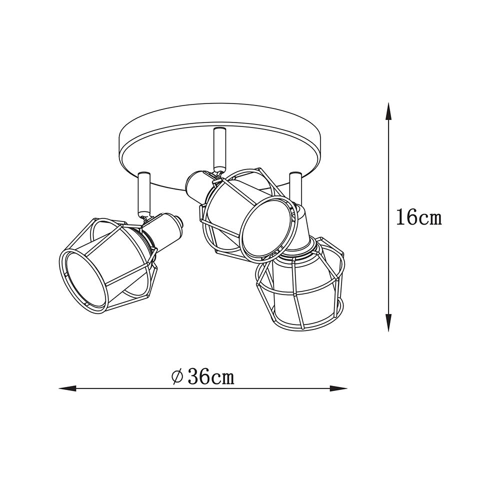 The grey ceiling spotlight Nila has the style vintage and is made of metal. This vintage ceiling spotlight has 3 E14 lamp holders and is supplied excluding 3 light sources. The lamp can accommodate light sources with a maximum power of 25 watts per bulb.