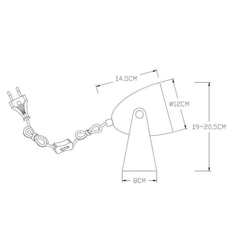 Product information Maximum wattage 40 Supply voltage 220-240V Number of lights 1 Lampholder type E14 Product information Light included No Width in cm 15 Diameter in cm 20 Weight in KG 0.57 Height in cm 19 Cable length 180 Length in cm 13 Dimmable No Warranty 2 years IP classification IP20 (dustproof) Colour Grey Material Metal With switch Yes With cord and plug Yes Style Modern Switch type On/off switch on the cord Article number Q18231 - Home
