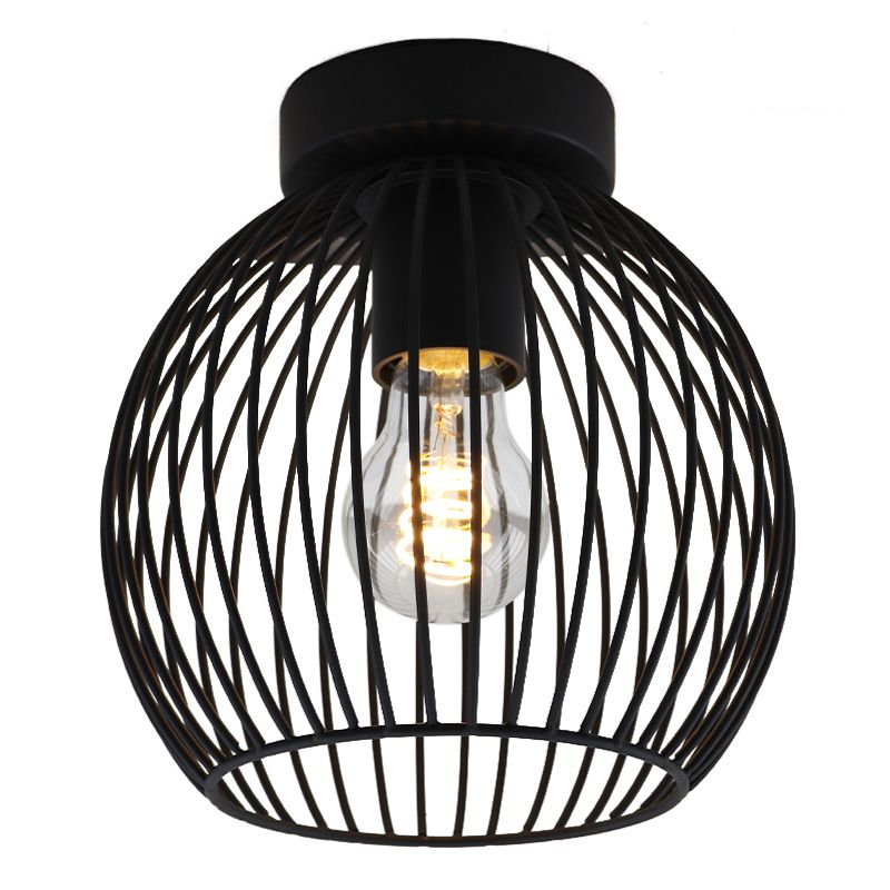 The industrial flush ceiling light Wiro has the colour black and is made of metal. The black flush ceiling light is supplied without a light source. In this lamp, a light source with a E27 lamp holder is needed, the maximum wattage of the light source must not exceed 60 watt.